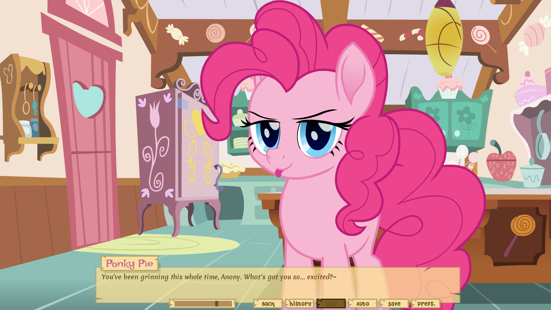 Vas a ayudar a alguien muy especial a preparar unos pastelitos. ¿Será sólo nata montada? Confection Confession está protagonizada por una burbujeante yegua rosa que estará encantada de pasar el día contigo.