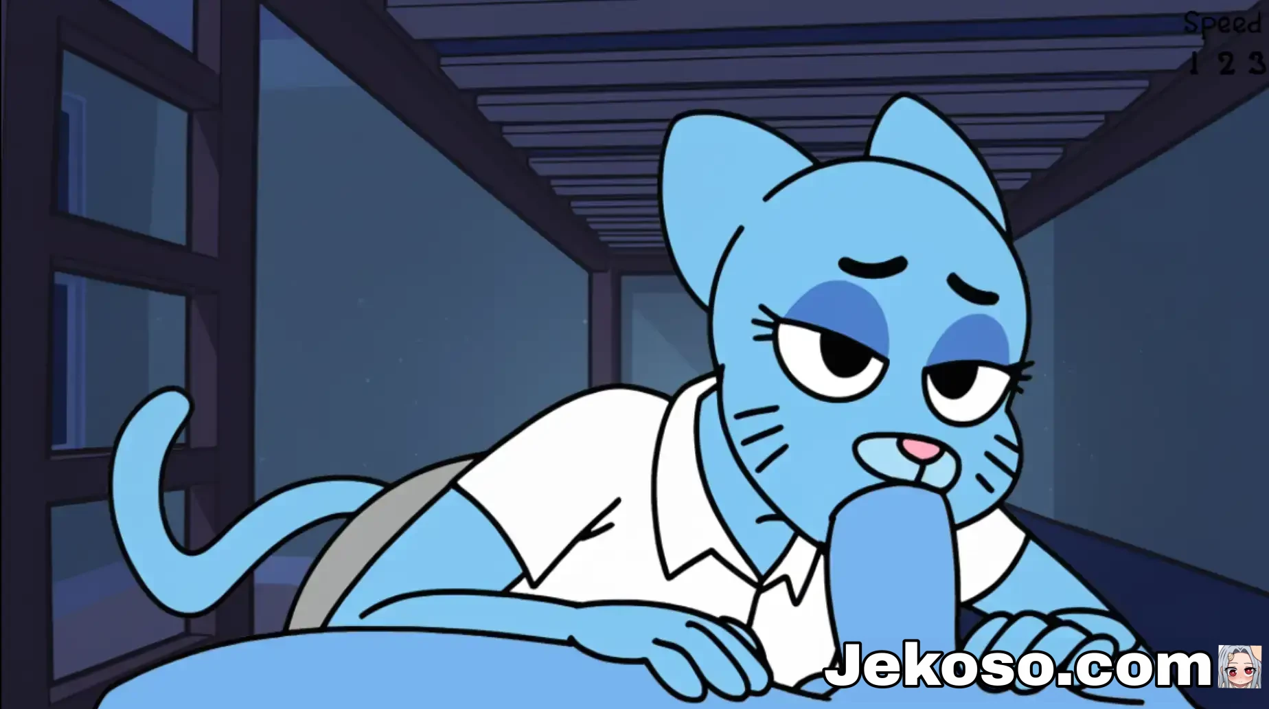 El gato azul más famoso ha tenido un día muy estresante. Trabajo, tareas domésticas… Ella está completamente agotada y quiere relajarse. Afortunadamente, estás aquí para ayudarla a aliviar parte de ese estrés acumulado.